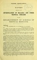 Papers relating to the investigation of malaria and other tropical diseases and the establishment of schools of tropical medicine.