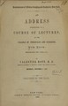 An address, delivered at the commencement of the lectures, in the College of Physicians and Surgeons in the City of New-York / Published by order of the College.
