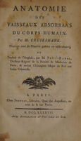 Anatomie des vaisseaux absorbans du corps humain / par M. Cruikshank ; ouvrage orné de planches gravées en taille-douce ; et traduit de l'anglais, par M. Petit-Radel.