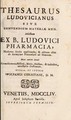 Pharmacopoeia Ludoviciana. Ceu medicamentorum sylloge quae in promptu asservanla velit ... / D. Ludovicus ... in libro De pharmacia moderno seculo applicanda ... alphabetice disposita.