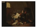 A monkey barber-surgeon's establishment. Oil painting after David Teniers the younger.