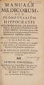 Manuale medicorum, seu promptuarium Hippocratis Aphorismorum, Praenotionum, Praedictionum et Coacarum, secundùm propriam morborum omnium nomenclaturam, alphabetico digestum ordine / ... Jàm olim editum à D. Honor. Bicaissio ... De novo recollectum, plurimis novis accessionibus auctum, & insignioribus Aurelii Cornelli Celsi sententiis locupletatuma a M. Henrico Guyot.
