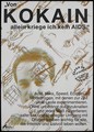 The head of a man against a backdrop of drug-related illustrations with a message that safe use of cocaine does not transmit AIDS; an advertisement by Deutsche AIDS-Hilfe e.V. Colour lithograph by Peder Iblher.
