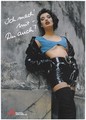 A woman with long black hair, a short skirt and fishnet stockings stands looking out with her hands on her hips beside a bed with a message about the need to use condoms; an advertisement for safe sex by the Deutsche AIDS-Hilfe e.V. Colour lithograph by Torsten Schmidt and Augenblitz.