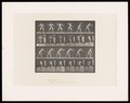 E. Muybridge throwing a disc, ascending stairs, and walking. Collotype after Eadweard Muybridge, 1887.