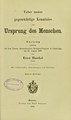 Ueber unsere gegenwartige Kenntniss vom Ursprung des Menschen : Vortrag gehalten auf dem Vierten Internationalen Zoologen-Congress in Cambridge, am 26. August 1898 / von Ernst Haeckel.