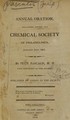 Annual oration, delivered before the Chemical Society of Philadelphia, January 31st, 1801 / by Felix Pascalis, M.D. ; published by order of the Society.