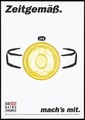 A watch with a yellow condom instead of a face; representing protection against AIDS. Colour lithograph, 199-.