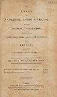 The lives of Andrew Robinson Bowes, Esq., and the Countess of Strathmore, written from thirty-three years' professional attendance, from letters, and other well authenticated documents / By Jesse Foot.