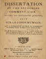 Dissertation où l'on recherche comment l'air, suivant ses différentes qualités, agit sur le corps humain. : Qui a remporté le prix au jugement ... / Par M. Boissier de Sauvages.