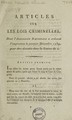 Articles sur les lois criminelles, dont l'Assemblée a ordonné l'impression le premier décembre, 1789.