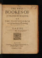The two bookes of Sr Francis Bacon, of the proficience and advancement of learning, divine and humane.