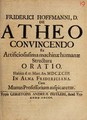 De atheo convincendo ex artificiosissima machinae humanae structura oratio. Habita d. 27 Mart. An. MDCXCII. In Alma fridericiana. Cum munus professorium auspicaretur / [Friedrich Hoffmann].