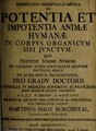 Dissertatio inauguralis medica de potentia et impotentia animae humanae in corpus organicum sibi junctum / [Márton Nagy].