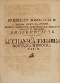 Propempticon inaugurale de mechanica febrium doctrina Hippocratica ... / [Friedrich Hoffmann].