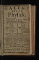 Galens Art of physick / ... Translated ... and largely commented on; together with convenient medicines for all particular distempers ... By Nich. Culpeper.