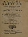 Galilaei Galilaei ... Systema cosmicum. In quo dialogis IV. de duobus maximis mundi systematibus, Ptolemaico & Copernicano, rationibus utrinque propositis indefinitiè ac solidè differitur. Accessit alterâ hâc editione praeter conciliationem locorum S. Scripturae cum terrae mobilitate, ejusdem Tractatus de motu, nunc primum ex Italico sermone in latinum versus / [Galileo Galilei].