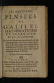 Les novvelles pensées. Où par des inuentions merueilleuses, et des demonstrations inconnuës iusques à present, il est traitté de la proportion des mouuements, tant naturels, que violents, et de tout ce qu'il y a de plus subtil dans les mechaniques et dans la physique / Traduit d'italien ... [par M. Mersenne].