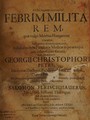 Febrim militarem, quae vulgo Morbus Hungaricus vocatur, ... / sub praesidio Georgii Christophori Petri, ... Submittit Salomon Fleischhauerus, ... Ad diem 10. Februarii, Horis & locô consuetis.