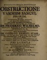 Dissertatio medica inauguralis de obstructione vasorum sanguiferorum ... / publice defendet Jo. Siegmund Hecht.