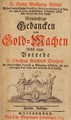 D. Georg Wolffgang Wedels ... Vernünfftige Gedancken vom Gold-Machen / nebst einer Vorrede D. Christian Gottfried Stentzels.