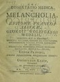 Dissertatio medica de melacholia / ex epitome praxeos clinicae, Georgii Wolffgangi Wedelii ... eodem praeside.