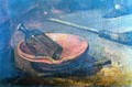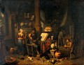 An alchemist in his laboratory. Oil painting by or after B. van den Bossche or G. Thomas.