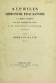 Hieronymi Fracastori Syphilis sive Morbus gallicus / carmen ad optimarum editionum fidem edidit notis et prolegomenis ad historiam morbi gallici facientibus instruxit Ludovicus Choulant.
