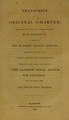Transcript of original charter, granted by ... George IV. in favour of the Glasgow Lunatic Asylum, erecting the same into a body corporate and politic ... 9th December, 1824; and translation thereof.
