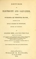 Lectures on electricity and galvanism : in their physiological and therapeutical relations : delivered at the Royal College of Physicians, revised and extended / by Golding Bird.