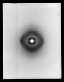 X-ray powder diffraction exposure of a disintegrated sodium (Na) salt DNA fibre referenced as "Powder diagram from disintegrated Na DNA fibre"