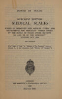 Merchant shipping medical scales : scales of medicines and medicines stories for merchant vessels / issued by the Board of Trade under sections 200 and 300 of the Merchant Shipping Act. 1894.