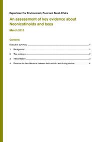 An assessment of key evidence about Neonicotinoids and bees / Department for Environment, Food & Rural Affairs.