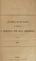 An appeal to the public in behalf of a hospital for sick children.