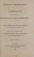 Animal chemistry, or, Chemistry in its applications to physiology and pathology / by Baron Liebig ; edited from the author's manuscript by William Gregory.