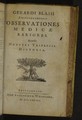 Gerardi Blasii Amstelodamensis Observationes medicae rariores. Accedit Monstri triplicis historia / [by M. Heiland, etc., 1676].