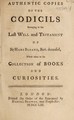 Authentic copies of the codicils belonging to the last will and testament of Sir Hans Sloane, Bar. deceased, which relate to his collection of books and curiosities / [Sir Hans Sloane].