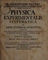 D. Christiani Vateri P.P. et phys. provinc. saxon. consiliarii curiae ... Physica experimentalis systematica in usum studiosae juventutis adornata multis quaestionibus curiosis illustrata.