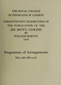 Tercentenary celebration of the publication of the De motu cordis by William Harvey, 1628 : programme of arrangements, May 14th-18th, 1928 / [compiled by] the Royal College of Physicians of London.