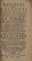 Recueil des methodes aprouvées des écoles de médecine, pour la guérison des plus dangereuses maladies ... telles que sont la verole, par les frictions et les sueurs ... Avec l'art de succer les playes sans se servir de la bouche de l'homme. Et une instruction au sujet d'un remede specifique pour prevenir certaines maladies veneriennes, nouvellement inventé / Par le Sieur D. Anel.