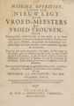 Manuale operatien, zijnde een nieuw ligt voor vroed-meesters en vroed-vrouwen. Haar getrouwelijk ontdekkende al wat nodig is te doen om barende vrouwen te helpen verlossen ... : waar by ook werd aangewesen, hoe men, als het nodig is, alle qualijk gekeerde kinderen kan regt keren, in regt of scheef leggende lijf moeders ... sonder instrumenten ... / door Hendrik van Deventer.