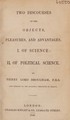 Two discourses of the objects, pleasures and advantages, I. of science: II. of political science / By Henry Lord Brougham.