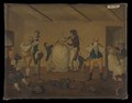 A barber's shop, 1784. Oil painting after Henry William Bunbury.