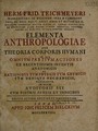 Elementa anthropologiae, sive theoria corporis humani in qua omnium partium actiones ex recentissimis inventis anatomicis, et rationibus tum physicis tum chymicis, tum denique mechanicis, declarantur ... / [Hermann Friedrich Teichmeyer].