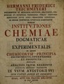 Institutiones chemiae dogmaticae et experimentalis, in quibus chemicorum principia, instrumenta, operationes, et producta, simulqve analyses trium regnorum succincta methodo traduntvr in usum auditorii sui cum figuris Aeneis et indicibus / [Hermann Friedrich Teichmeyer].