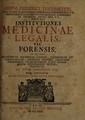 Institutiones medicinae legalis, vel forensis, in quibus praecipuae materiae civiles, criminales et consistoriales, secundum principia medicorum decidendae ... traduntur ... / [Hermann Friedrich Teichmeyer].