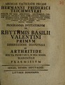 Programma invitatorium de rhythmis Basilii Valentini primum dissertationi inaugurali de arthritide ... labendae praemissum / [Hermann Friedrich Teichmeyer].