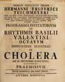 Programma invitatorium de rhythmis Basilii Valentini octavum dissertationi inaugurali [J.M. Eichleri] de cholera ... praemissum / [Hermann Friedrich Teichmeyer].