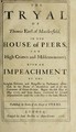 The tryal of Thomas Earl of Macclesfield, in the House of Peers, for high crimes and misdemeanors; upon an impeachment. By the knights citizens and burgesses in Parliament assembled, in the name of themselves and of all the commons of Great-Britain. Begun the 6th day of May 1725, and from thence continued by several adjournments until the 27th day of the same month / Published by order of the House of peers.