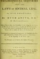Philosophical inquiries into the laws of animal life : in six chapters / by Hugh Smith.